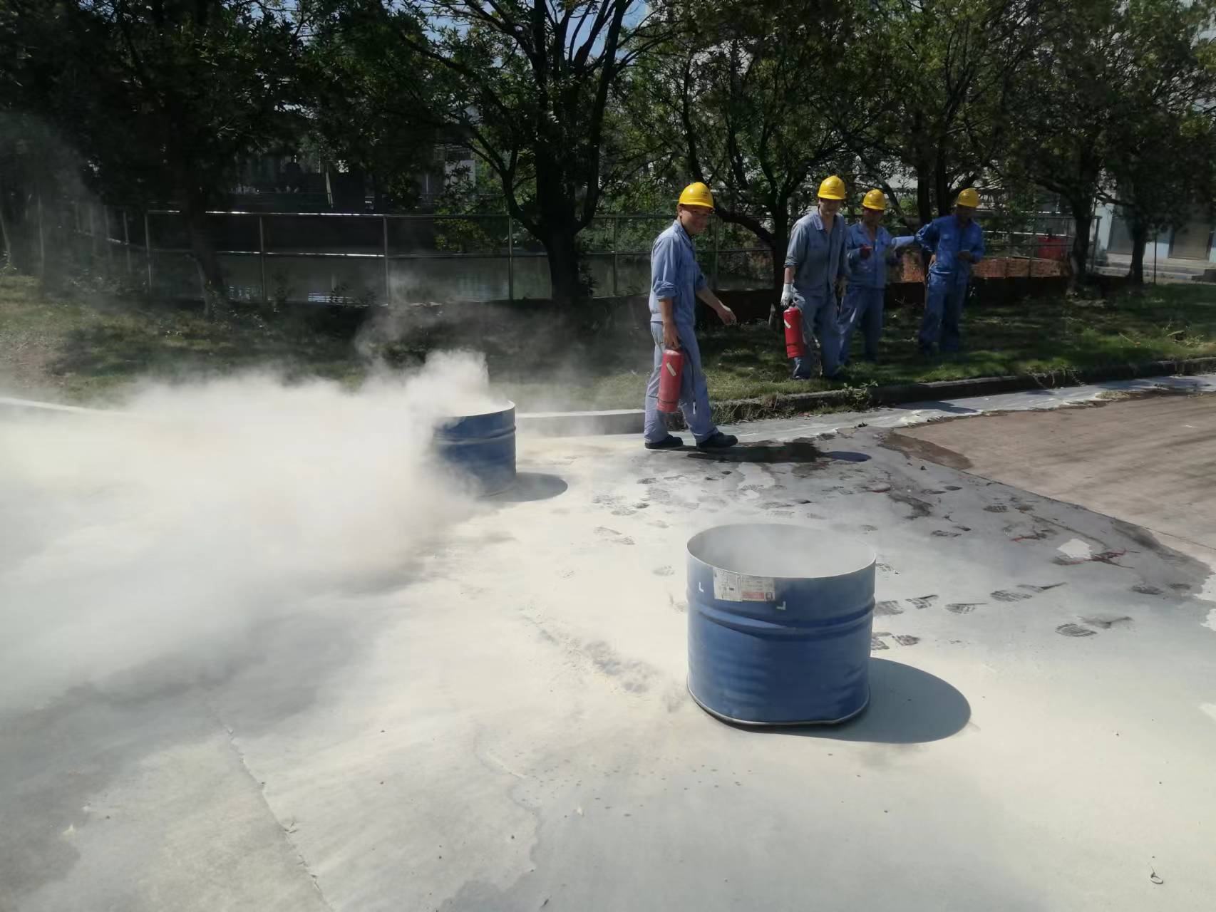 2、滅火器滅火比賽。每一個(gè)人一組,隊(duì)員從指定地點(diǎn)跑到滅火區(qū)向滅火桶內(nèi)噴射滅火劑噴完滅火劑計(jì)時(shí)結(jié)束。以時(shí)間從短到長進(jìn)行排名。