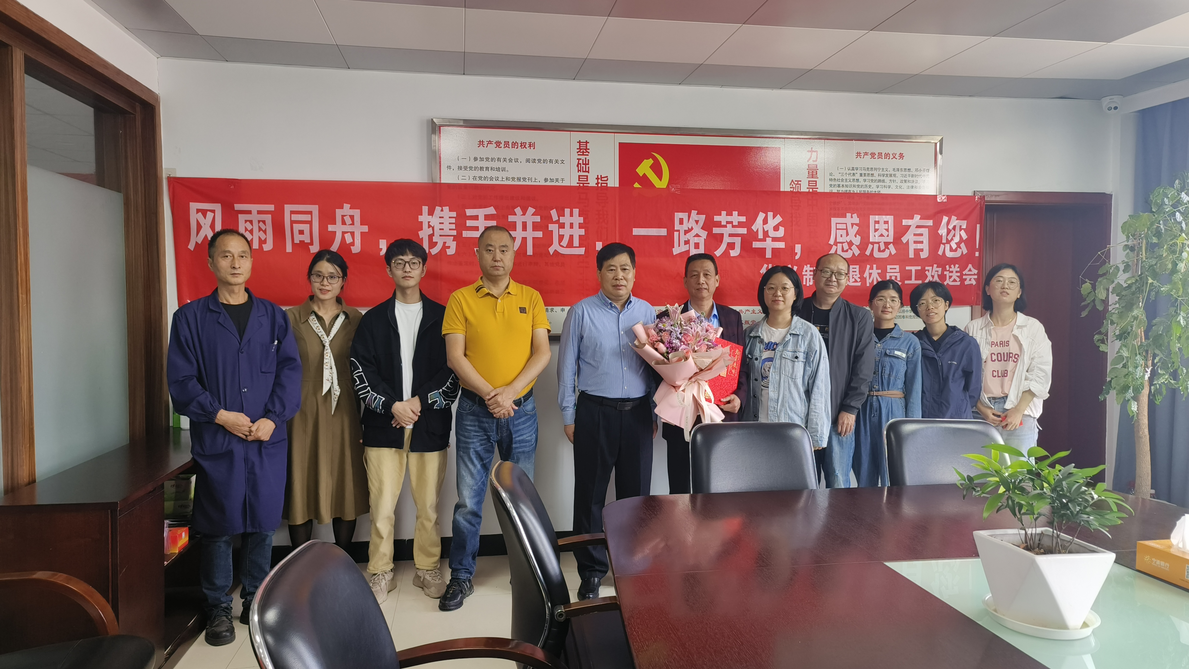 歡送會由董事長王井明、工會主席蘇先斌、財務(wù)部同事及工會委員參加。